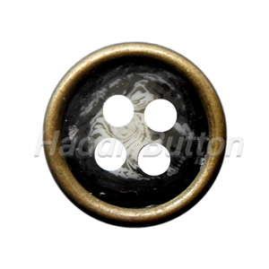 组合式相拼树脂钮扣 组合式相拼钮扣通过不同的材料搭配在一起,做出了特别的纽扣。就拿铜圈树脂纽扣来说,结实的金属铜圈配上透亮的树脂,金属的硬朗和树脂的温润凑一块儿,复古又时髦;气眼树脂纽扣把金属气眼和树脂底结合,既让纽扣更结实耐用,看起来还特别有层次,刚柔并济。此外金属合金和树脂的组合,ABS电镀和树脂的组合等等。这些纽扣都是精心设计制作的,材质多样、特点鲜明,能给衣服添亮点,不管你想要什么风格,都能找到合适的!